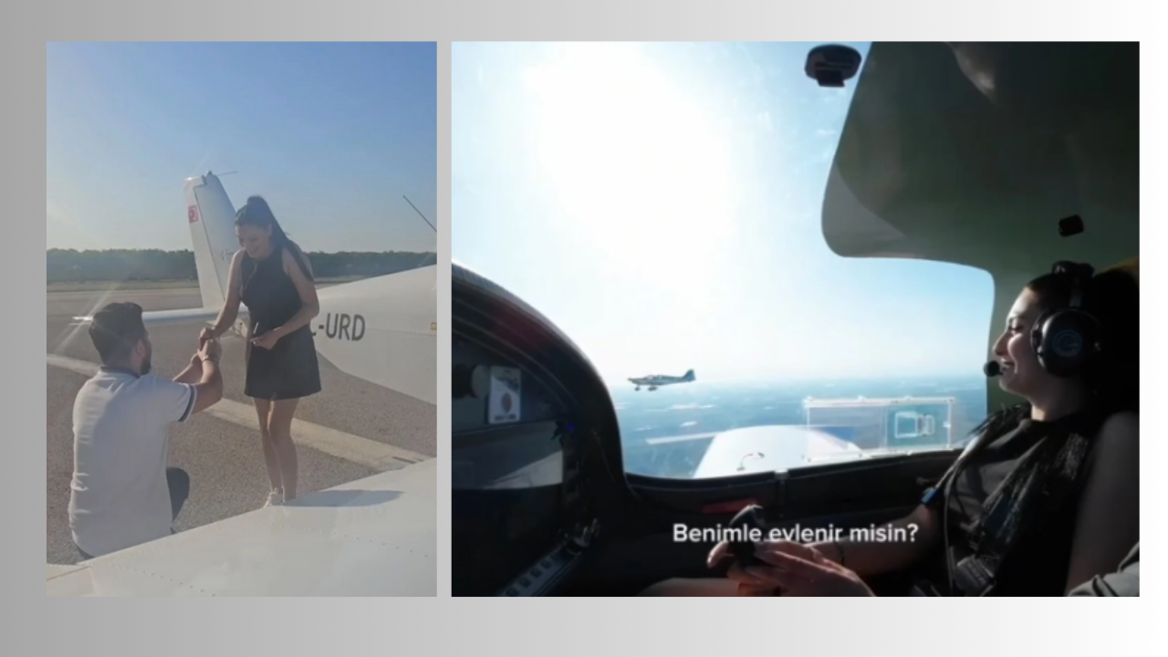 Adana’da oto kiralama işi yapan 23 yaşındaki Metin Topal, sevgilisi Sebihe Nur Özerten’e hafızalardan silinmeyecek bir evlilik teklifi yaptı. Sıradan bir plan yerine gökyüzünü seçen Topal, bir uçuş okuluyla anlaşarak iki farklı uçak kiraladı. Sevgilisiyle ayrı uçaklarda havalanan çift, Adana semalarında yan yana uçarken romantik anlar yaşandı.