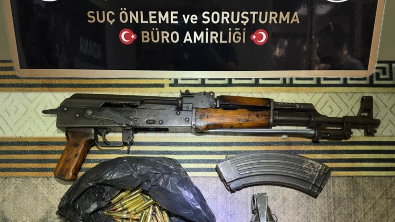 Adrese yapılan baskında A.U. ile birlikte evde bulunan Y.C. (44) ve oğulları S.C. (17) ile C.C. (18) gözaltına alındı. Evde yapılan aramalarda AK-47 uzun namlulu tüfek, 47 adet uzun namlulu tüfek fişeği, el bombası ve ruhsatsız tabanca ele geçirildi.