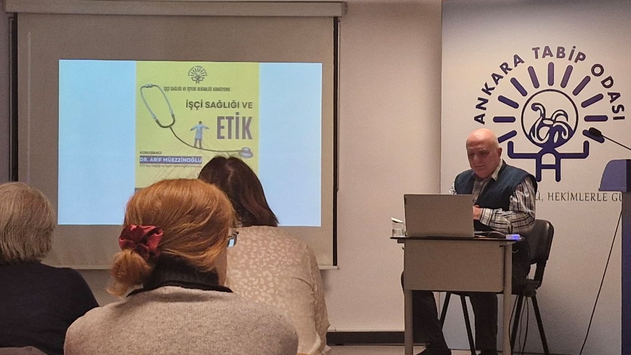 Ankara Tabip Odası İşçi Sağlığı ve İşyeri Hekimliği Komisyonu tarafından düzenlenen söyleşide konuşan Dr. Arif Müezzinoğlu, Dr. Murat Civaner’in katkılarıyla hazırlanan Dünya Hekimler Birliği Tıp Etiği Elkitabı üzerinden tıp etiğinin tarihsel gelişimini ve günümüzdeki önemini değerlendirdi.