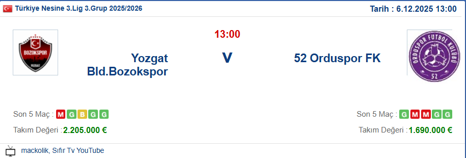 Konuk 52 Orduspor FK ise grubun en formda takımlarından biri olarak Ankara’ya geliyor. 25 puanla 2. sırada bulunan mor-beyazlılar, son dönemde hücumda etkili bir görüntü verdi. İki takım arasında sezonun ilk yarısında oynanan mücadele 2-0 52 Orduspor üstünlüğüyle tamamlanmıştı. Bu maç, hem Bozokspor’un iç saha serisini hem de 52 Orduspor’un zirve yarışındaki konumunu yakından ilgilendiriyor.