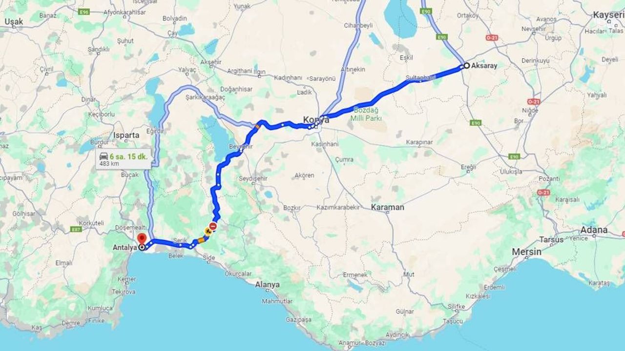ANTALYA AKSARAY ARASI KAÇ KİLOMETRE?