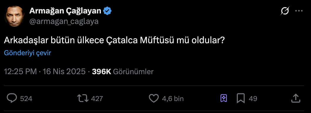 Armağan Çağlayan’dan Sert TepkiÜnlü televizyoncu Armağan Çağlayan, sosyal medya platformu X üzerinden yaptığı paylaşımla bu yorumlara sessiz kalmadı. Çağlayan, “Arkadaşlar, bütün ülkece Çatalca Müftüsü mü olduk?” diyerek, Önder’in sağlık durumu üzerinden yapılan çirkin paylaşımları kınadı. Bu ifade, sosyal medyada büyük destek gördü ve tartışmaları alevlendirdi.