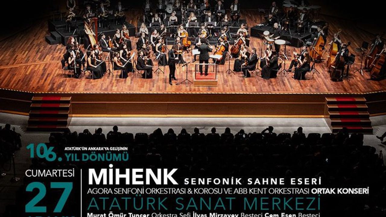 Ankara’da, Atatürk’ün Ankara’ya gelişinin 106’ncı yıl dönümü kapsamında düzenlenen etkinlikler çerçevesinde “Mihenk” adlı senfonik sahne eseri izleyiciyle buluşacak. Konser, 27 Aralık Cumartesi günü saat 20.00’de Atatürk Sanat Merkezi’nde gerçekleştirilecek.