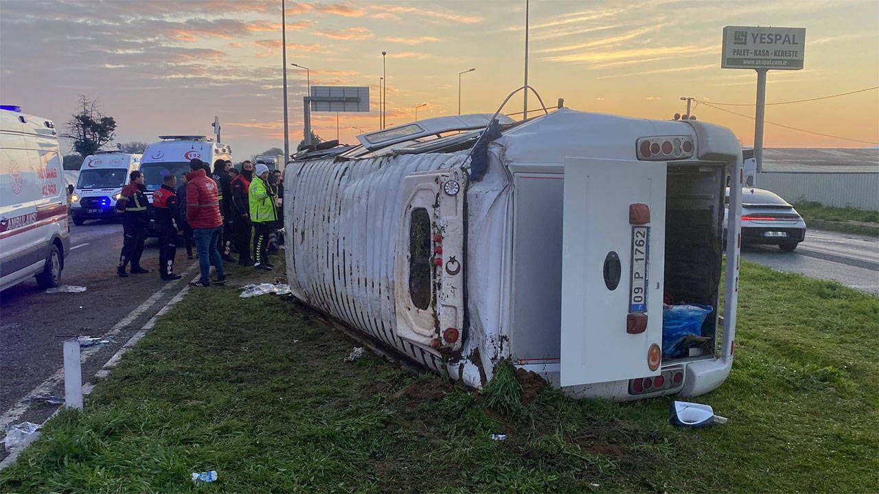 Aydın’da sabah saatlerinde meydana gelen trafik kazası yürekleri ağza getirdi. Sultanhisar ilçesinde fabrika işçilerini taşıyan bir servis minibüsünün devrilmesi sonucu 16 kişi yaralandı. Kaza sonrası olay yerine polis, jandarma, itfaiye ve sağlık ekipleri sevk edilirken, yaralılar hastanelere kaldırıldı.