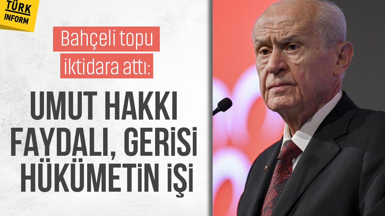 MHP Genel Başkanı Devlet Bahçeli, partisinin grup toplantısının ardından gazeteci Murat Yetkin ile yaptığı görüşmede, terör örgütü PKK elebaşı Abdullah Öcalan için “umut hakkı” ve eski HDP Eş Genel Başkanı Selahattin Demirtaş için beraat çağrısına ilişkin değerlendirmelerde bulundu.