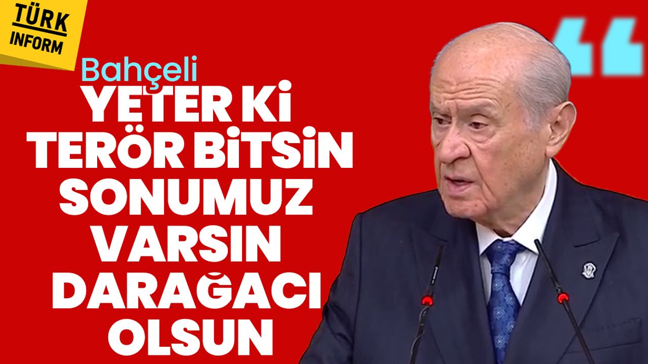 MHP Genel Başkanı Devlet Bahçeli, konuşmasının en dikkat çeken bölümünde kendisine ve partisine yönelik "yargılanma" ve "hesap sorma" söylemlerine yanıt verdi. "Neymiş bizi yargılayacaklarmış, bizden hesap soracaklarmış" diyerek sözlerine başlayan Bahçeli, Türkiye'nin geleceği için her türlü bedeli ödemeye hazır olduklarını ifade etti. Bahçeli, konuyla ilgili olarak, "Şu yaşımda mertçe ve dürüstçe haykırıyorum. Yeter ki Türkiye ve Türk milleti; barış, huzur ve sükunet bulsun, yeter ki terör hayatımızdan kalıcı olarak sökülüp atılsın, bizim sonumuz da varsın darağacı olsun" ifadelerini kullandı.