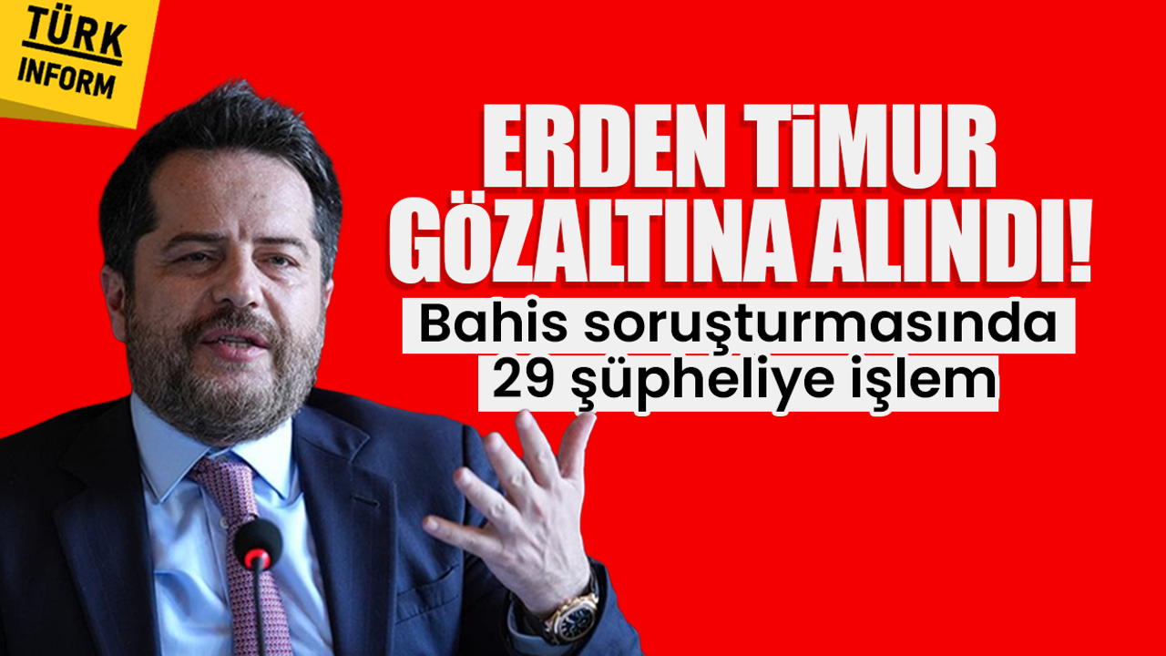 İstanbul merkezli 11 ilde yürütülen yasa dışı bahis ve şike soruşturması kapsamında düzenlenen operasyonda, Galatasaray eski Başkanvekili ve Nef Yönetim Kurulu Başkanı Erden Timur gözaltına alındı. Emniyet birimlerinin gerçekleştirdiği eş zamanlı baskınlarda, aralarında aktif futbolcuların ve bir federasyon görevlisinin de bulunduğu toplam 29 şüpheli hakkında yakalama ve arama işlemleri uygulandı.