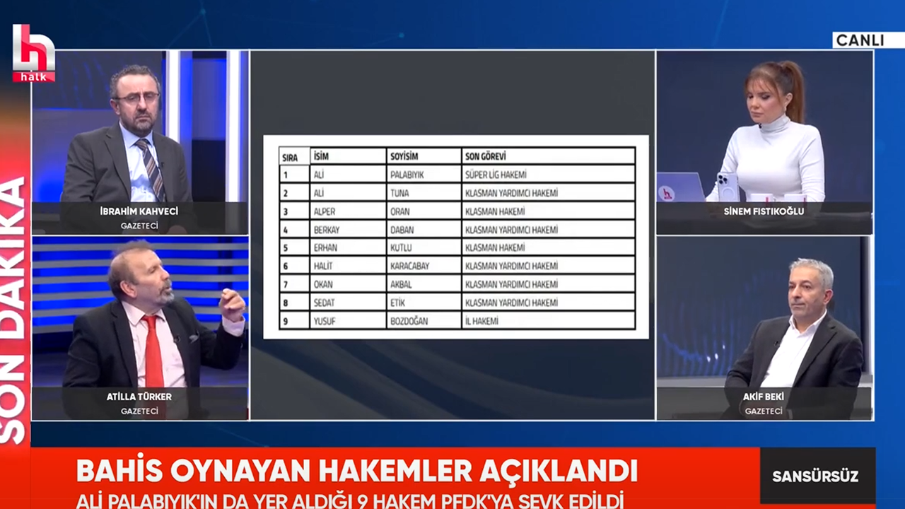 "Şimdi Futbol Federasyonu idari açıdan bu soruşturmayı sürdürüyor. Ne oluyor? İşte oynayanlara üç aydan bir yıla kadar ceza veriliyor. Hakemlerin lisansı iptal ediyor. Ama turbun büyüğü heybenin dibinde dememin asıl nedeni şu, Cumhuriyet Savcılığı, yani adli yargı olayın içinde. Şimdi Futbol federasyonunun eee denetlemesi, soruşturması bir yere kadar. Kim oynamış, ne kadar oynamış, kendi maçına oynamış mı? Bu kadar. Bahis sitelerinden bunlar alınıyor. Başka yapabileceği bir şey yok. Hani cezasını veriyor bu kadar. Ama eee adli yargı, savcılık bakıyor arkadaş, para hareketlerine bakıyor. Hangi maçta ne kadar para yatırılmış? Tüm elinde-"
