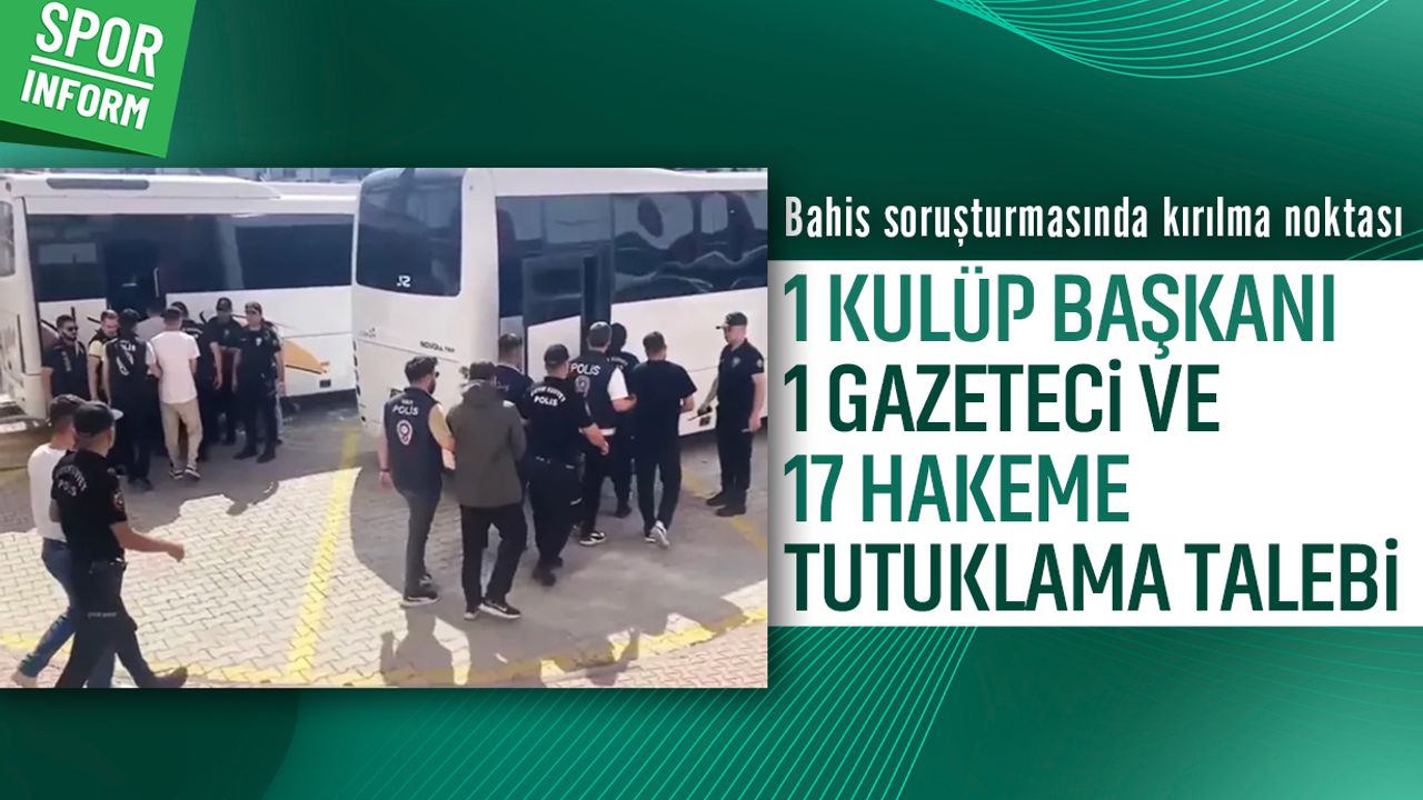 TFF Başkanı İbrahim Hacıosmanoğlu’nun bazı hakemlerin bahis oynadığı yönündeki açıklamaları sonrası başlatılan soruşturma kapsamında yeni bir gelişme yaşandı. İstanbul Cumhuriyet Başsavcılığı, aralarında 17 hakem, Eyüpspor Kulübü Başkanı Murat Özkaya ve bir gazetecinin de bulunduğu 19 kişiyi tutuklama talebiyle mahkemeye sevk etti. Soruşturmada “Görevi Kötüye Kullanma”, “Müsabaka Sonucunu Etkileme” ve “Halkı Yanıltıcı Bilgi Yayma” suçlamaları öne çıkarken, ifadelerini veren isimler suçlamaları reddetti.