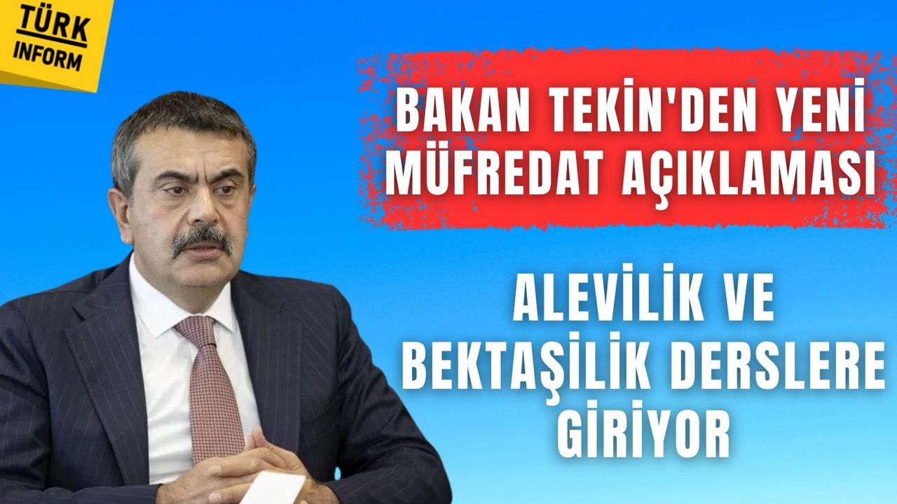Milli Eğitim Bakanı Yusuf Tekin, Malatya'da katıldığı bir Cemevi etkinliğinde "Türkiye Yüzyılı Maarif Modeli" kapsamında din kültürü ve ahlak bilgisi derslerinde önemli bir değişikliğe gittiklerini açıkladı. Tekin, "Alevilik, Bektaşilik dahil Türkiye'deki bütün inançlarla ilgili çocuklarımızın özgürce ve doğru bilgiye erişebilecekleri bir müfredat geliştirdik" dedi.