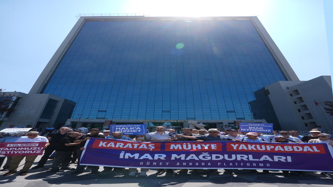 Çankaya'ya bağlı Karataş, Mühye ve Yakupabdal mahallelerinde ikamet edenlerden oluşan bir grup, imar sorunu yaşadıkları gerekçesiyle Ankara Büyükşehir Belediyesi (ABB) önünde protesto eylemi yaptı.