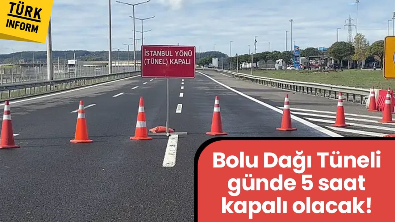 Anadolu Otoyolu’nun Bolu Dağı Tüneli İstanbul yönü, yapılacak kaplama çalışması nedeniyle 31 Ekim’e kadar her gün 5 saat süreyle ulaşıma kapatılacak. Trafik, bu saatler arasında D-100 kara yoluna yönlendirilecek.