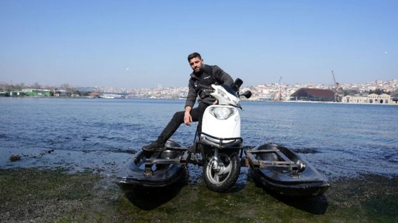 Yaklaşık 20 bin liraya mal olan projede, motosikletin pek çok aksamı deniz suyundan etkilenmemesi için yeniden tasarlandı. 2 adet kano ve elektrikli deniz motorunun eklenmesiyle ortaya çıkan Motokano, Haliç'ın üzerinde seyir halindeyken drone görüntülerine de yansıyarak ilginç manzaralar oluşturdu.