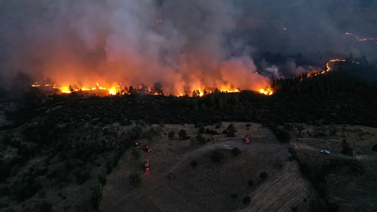 Yangına 4 uçak, 4 helikopter, 11 arazöz, 6 itfaiye aracı ve 5 ikmal aracı ile müdahale edildiği belirtildi. Ayrıca iş makineleri ve toplam 174 personelin de karadan söndürme çalışmalarına katıldığı bildirildi. Yangının henüz kontrol altına alınamadığı açıklandı.