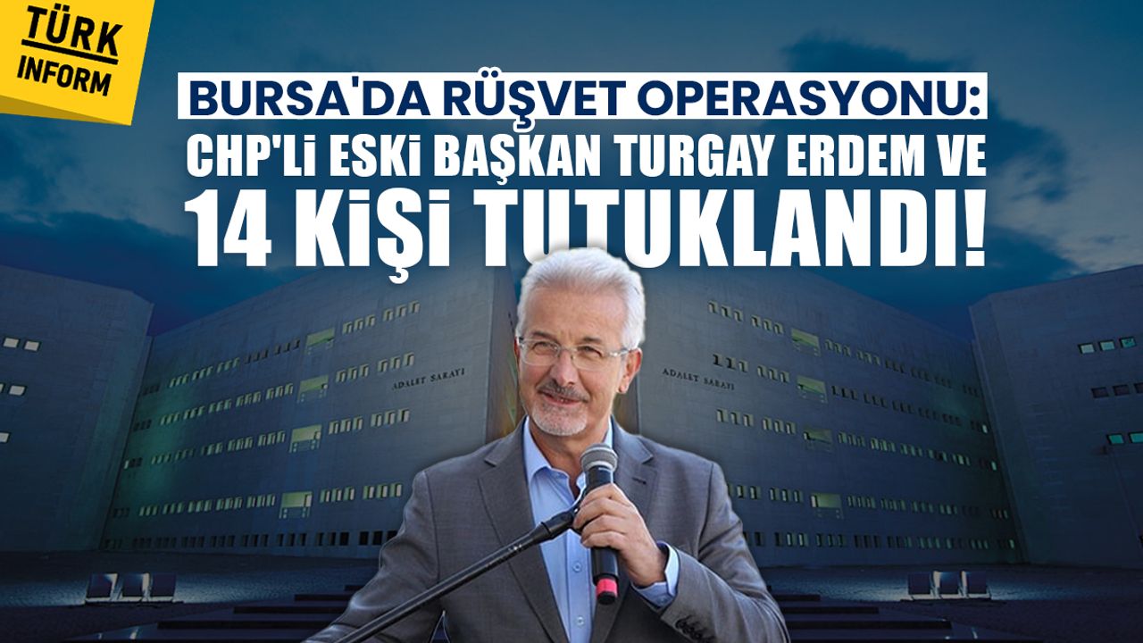 Bursa’da düzenlenen rüşvet ve kara para operasyonunda CHP’li Nilüfer eski Belediye Başkanı Turgay Erdem ve eşi dahil 22 kişi gözaltına alındı. Mahkeme aralarında Erdem’in de bulunduğu 15 kişiyi tutukladı, 7 şüpheliye adli kontrol kararı verdi. Operasyon kapsamında mal varlıklarına el konuldu, bir şirkete kayyum atandı.