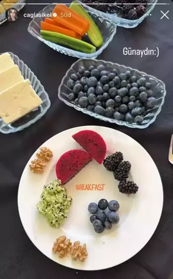 Her paylaşımıyla gündem olmayı başaran Çağla Şıkel, bu kez meyve ağırlıklı kahvaltı tabağını takipçileriyle paylaştı. 46 yaşındaki Şıkel’in renkli, vitamin deposu tabağı sosyal medyada büyük yankı uyandırdı. Çilek, kivi, yaban mersini gibi taze meyvelerle dolu tabak, fit vücudunun sırrını merak eden hayranlarının ilgisini çekti.