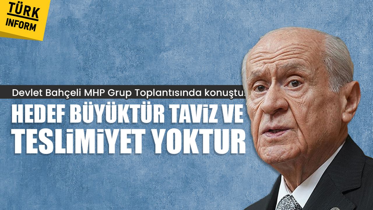 Bu süreçten rahatsız olanları "Acziyet içerisindedir" şeklinde tanımlayan MHP Lideri Bahçeli "Hedef büyüktür. Taviz ve teslimiyet ise asla yoktur. Türkiye kutlu bir doğum arifesindedir. Bu doğumun sancıları olabilir, yanlış anlaşılabilir, gerilimler olabilir fakat sabır ve sebatla ortak bir geleceğe yürüme kararlılığımız her sonuca kafidir" diye söyledi.