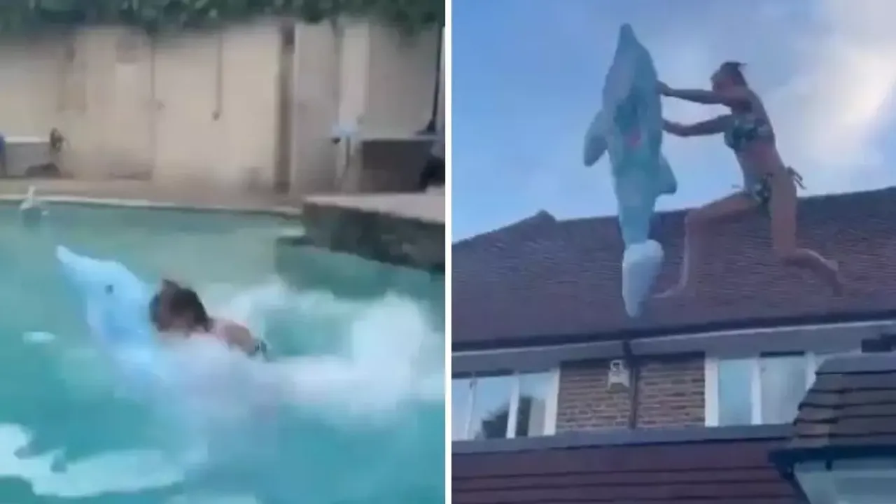 Olaydan ders çıkardığını vurgulayan genç kadın, “Bir daha çatıdan havuza atlamam. Hele hele kolumda şişme bir yunus varken asla! Kendimi betona çarpmış gibi hissettim. Dişlerim yerinde durduğu için çok şanslıyım” dedi.