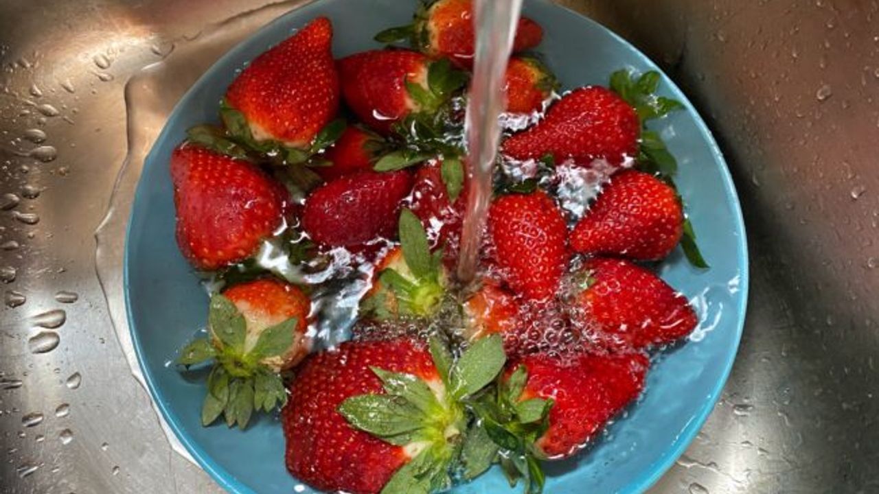 - Sadece Su: USDA, akan suyun yüzde 50-70 pestisit giderdiğini söylüyor. Çilekleri 30 saniye tutun.