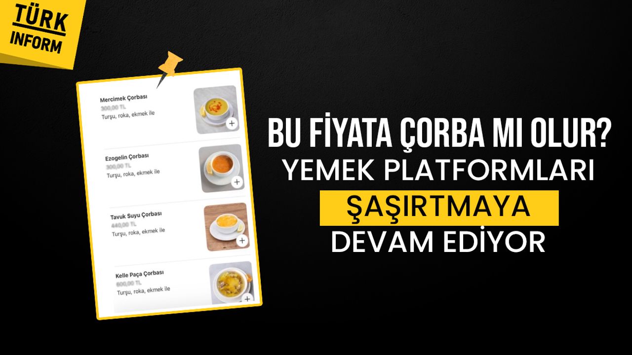Yemek sipariş platformlarında yer alan bazı restoranların çorba fiyatları dikkat çekici seviyelere yükseldi. Paylaşılan ekran görüntülerinde mercimek ve ezogelin çorbasının 300 TL, tavuk suyu çorbasının 440 TL, kelle paça çorbasının ise 600 TL’ye satıldığı görüldü. Liste, sosyal medya kullanıcıları arasında kısa sürede gündem oldu.