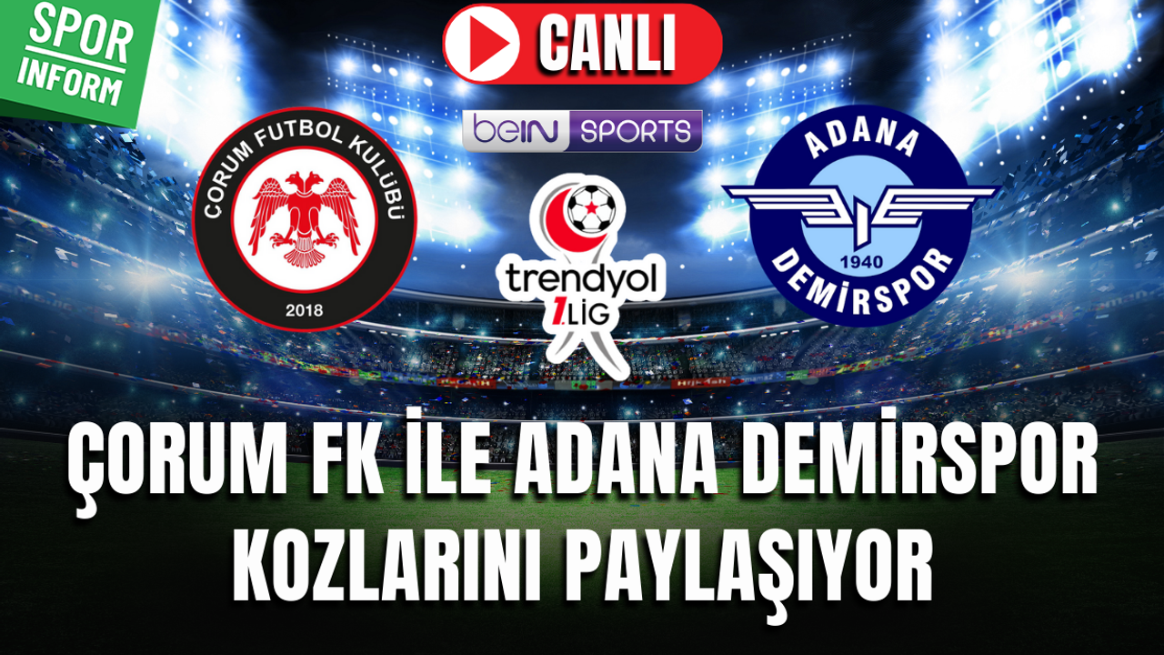 Çorum FK - Adana Demirspor maçı saat 20.00’de başlayacak ve beIN SPORTS 2, tabii ile TRT Spor ekranlarından canlı olarak yayınlanacak.