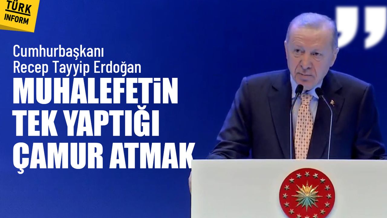 Cumhurbaşkanı Erdoğan, konuşmasında muhalefete de yüklendi. Yapılan her yatırımın karşısına engel çıkarılmaya çalışıldığını dile getiren Erdoğan, “Hizmet düşmanı bir muhalefetle karşı karşıyayız. Yaptığımız yollara ‘bozulur’, ‘israf’ dediler, petrol lobisine hizmet ettiğimizi iddia ettiler. Eğer bu söylemlere kulak verseydik bugün bu eserler ortaya çıkmazdı” şeklinde konuştu.