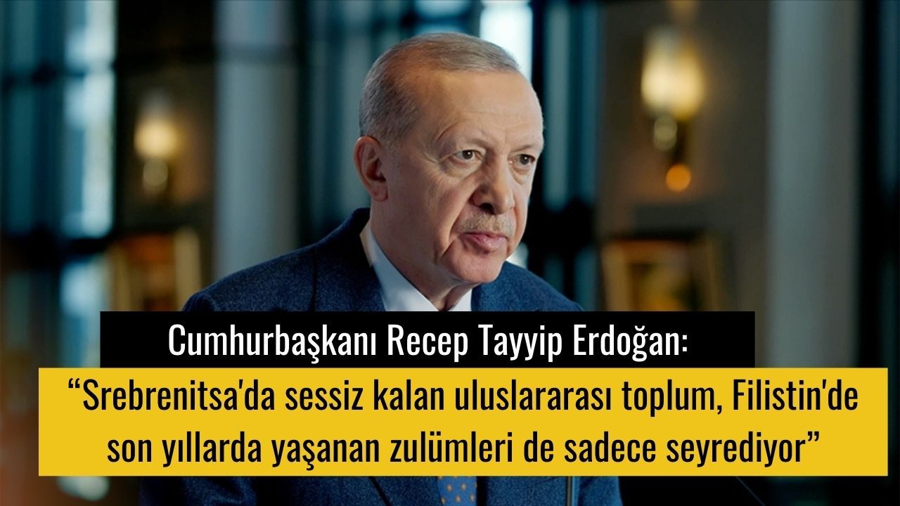 Cumhurbaşkanı Erdoğan, Gazze’de yaşananların uluslararası toplumun Srebrenitsa’dan ders almadığını ortaya koyduğunu belirterek, "Srebrenitsa’da sessiz kalanlar, bugün Filistin’deki zulme de sadece seyirci kalıyor" dedi.