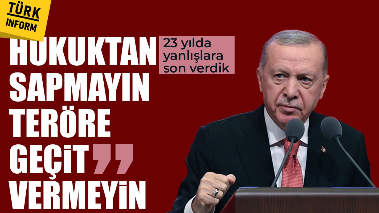 Konuşmasının devamında Erdoğan, devlet içinde veya dışında kendisini hukukun üzerinde gören hiçbir odağa izin verilmeyeceğini belirtti. Vatandaşların güvenliği ve huzurunun esas olduğunu dile getiren Cumhurbaşkanı, güvenlik güçlerinin millete hizmet etmekten aldığı güçle Türkiye’nin her noktasında kararlılıkla görev yaptığını söyledi. Erdoğan, devletin gücünü arkasına alarak hukuku çiğnemeye çalışan yapıların bertaraf edildiğini de vurguladı.