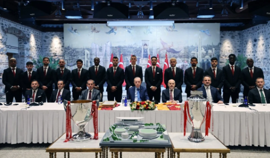 Bu önemli başarının ardından Cumhurbaşkanı Recep Tayyip Erdoğan, sarı-kırmızılı takımı Dolmabahçe Çalışma Ofisi’nde kabul etti.