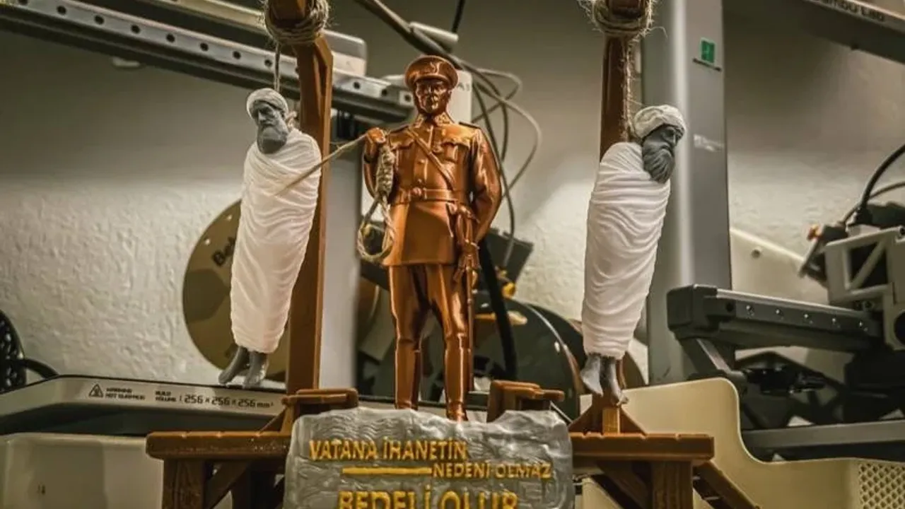 Sosyal medyada büyük tepki çeken 3 boyutlu biblolar, Şeyh Sait ve Seyit Rıza’yı darağacında, Atatürk’ü ise ip tutarken tasvir ediyordu. Bu bibloların satışını yapan “Katfar” kullanıcı adlı satıcı X platformu üzerinden gözaltına alındığını paylaştı. Ticaret Bakanlığı, ürünün hızla satıştan kaldırıldığını ve satıcı hakkında idari süreç başlatıldığını açıkladı.
