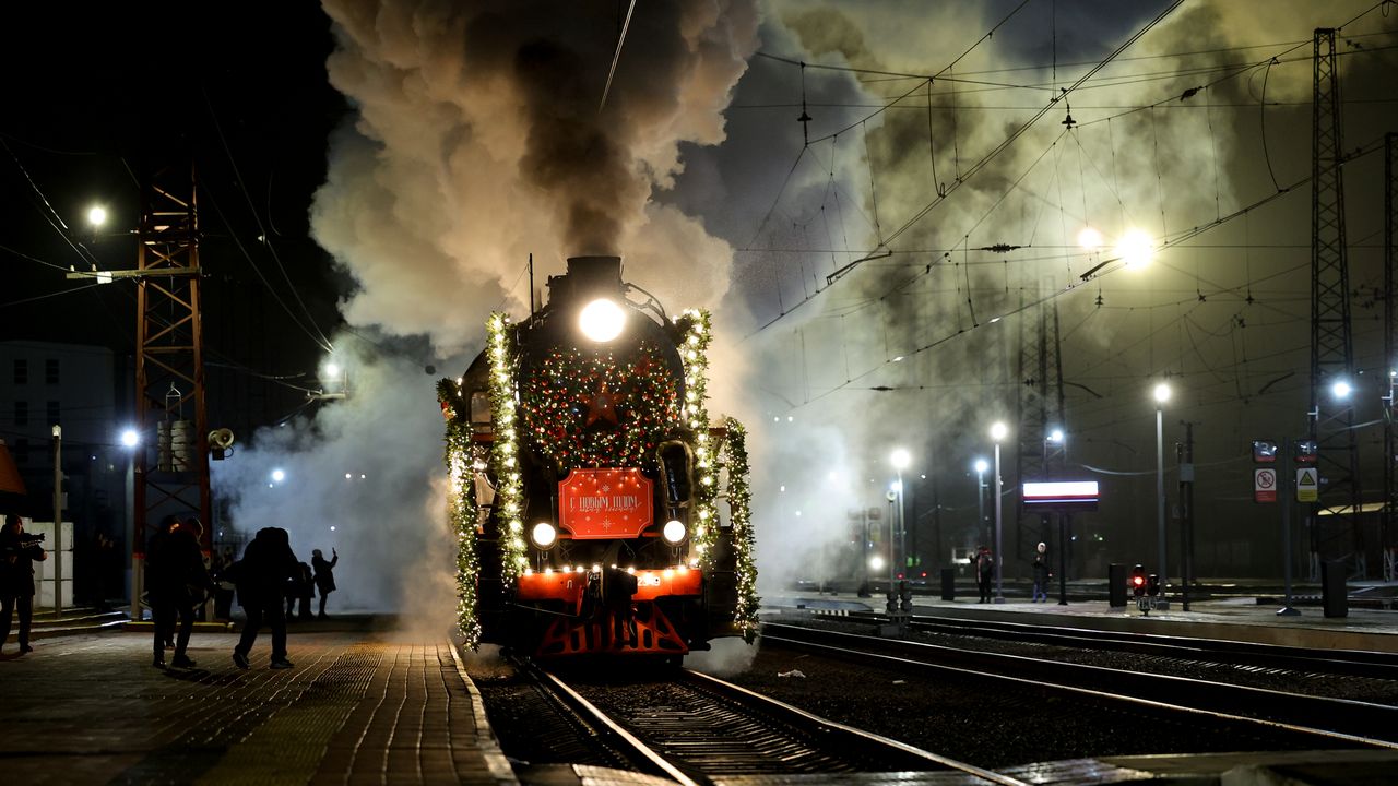 Rusya’da Noel ve yeni yıl kutlamaları kapsamında JSC Rus Demiryolları ile Vologda Bölgesel Yönetimi iş birliğinde hazırlanan Ded Moroz Treni, düzenlenen etkinlikle Belgorod kentine ulaştı. Özel olarak süslenen trenle kente gelen Ded Moroz, masal karakterleri eşliğinde şehir merkezinde gerçekleştirilen yılbaşı programına katıldı.