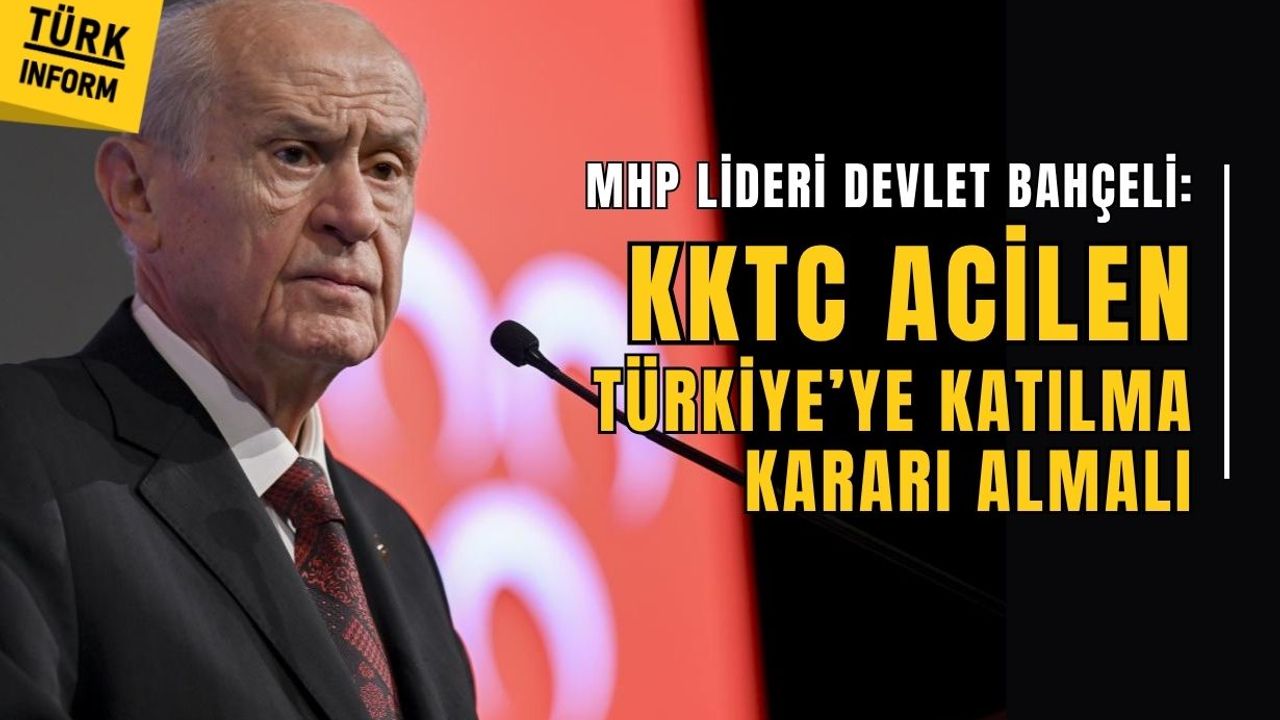 Devlet Bahçeli "KKTC parlamentosu acilen toplanmalı, seçim sonuçlarını ve federasyona dönüşün kabul edilemeyeceğini ilan etmeli ve Türkiye Cumhuriyeti’ne katılma kararı almalıdır" diyerek dikkat çeken bir yorumda bulundu.