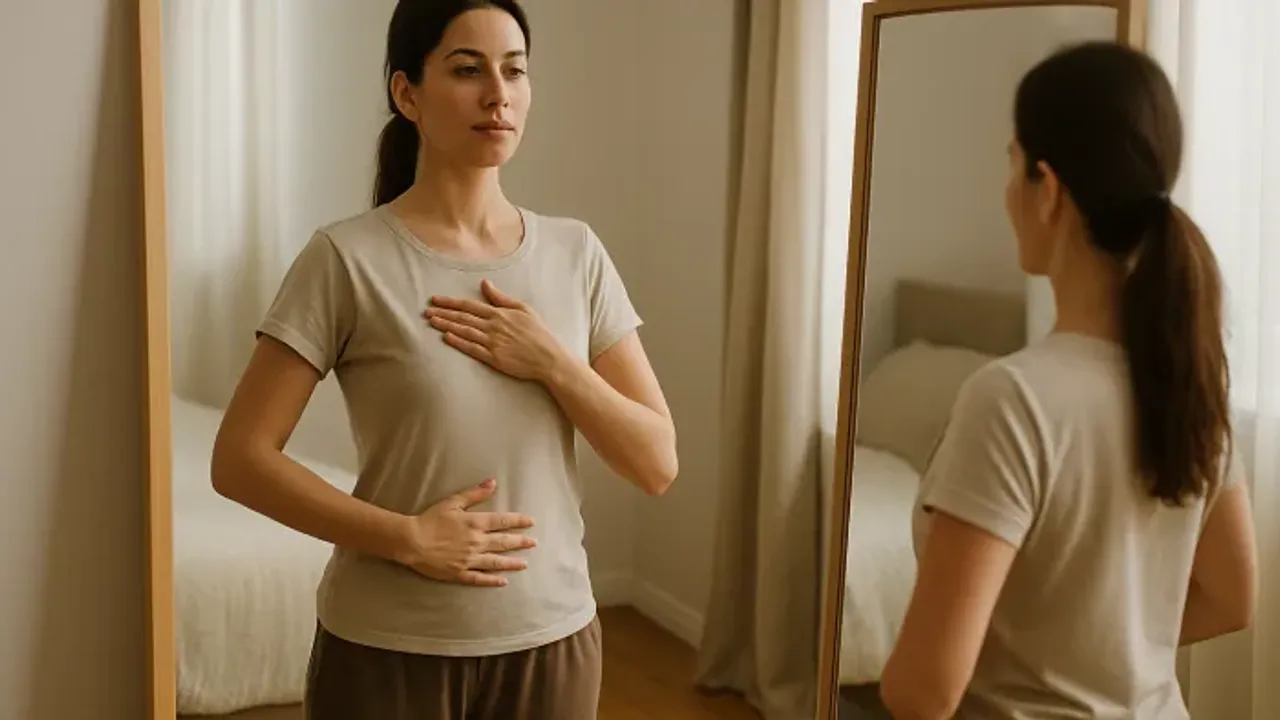 Bir elinizi göğsünüze, diğer elinizi karnınıza koyun.