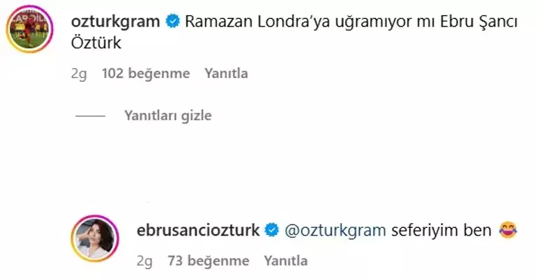 “Ramazan Londra’ya uğramıyor mu Ebru Şancı Öztürk?” diyerek esprili bir yorumda bulundu.