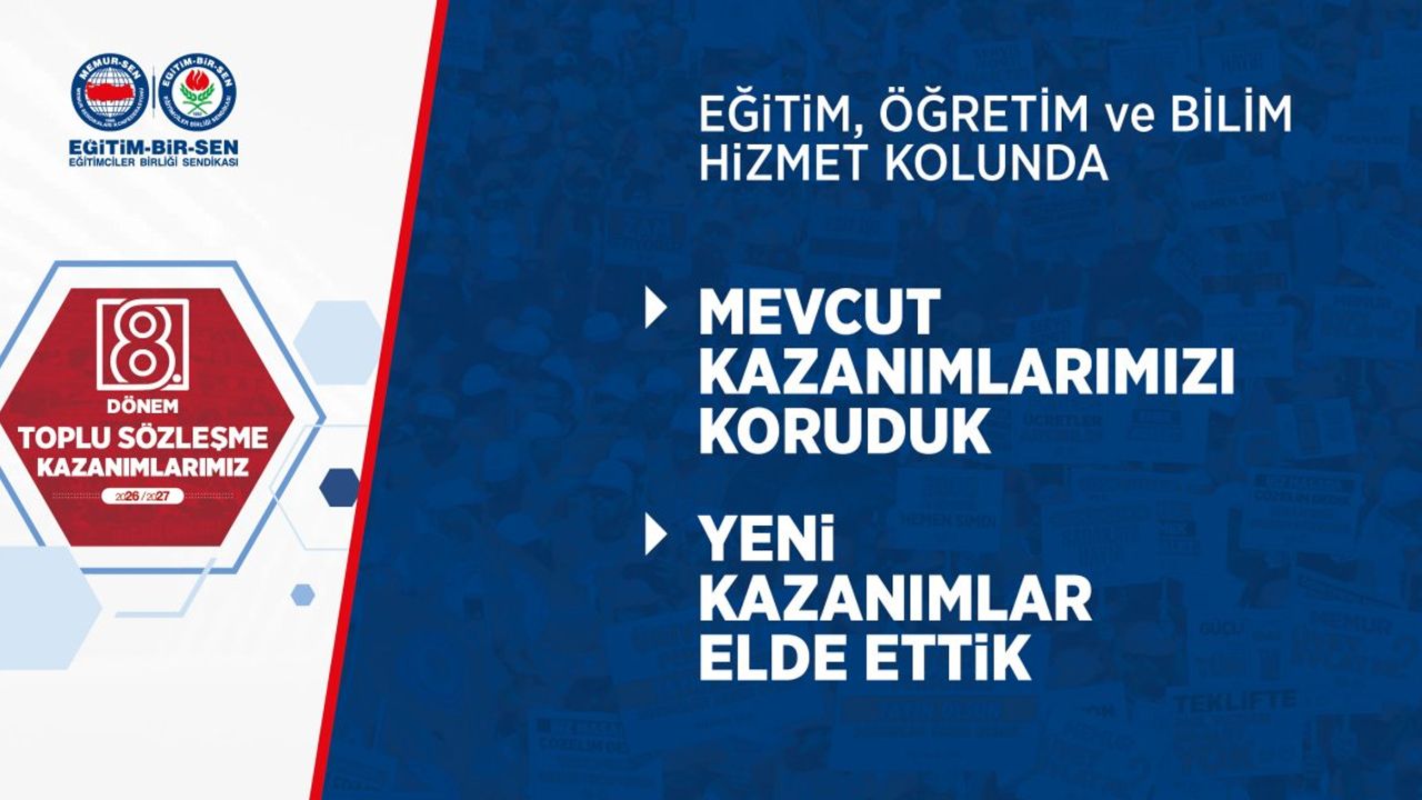 Eğitim-Bir-Sen, 8. Dönem Toplu Sözleşme ile eğitim çalışanlarının mali ve özlük haklarında önemli iyileştirmeler sağlandığını vurguladı.