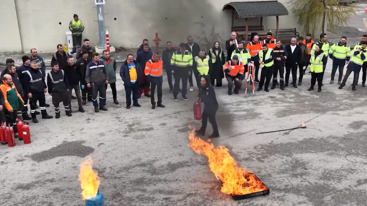 Tatbikat sırasında olası bir yangın durumuna yönelik müdahale senaryoları gerçekleştirildi. Yangın ihbarının alınmasının ardından alanın güvenli şekilde boşaltılması, personelin tahliye edilmesi ve yangına müdahale süreçleri uygulamalı olarak yürütüldü.
