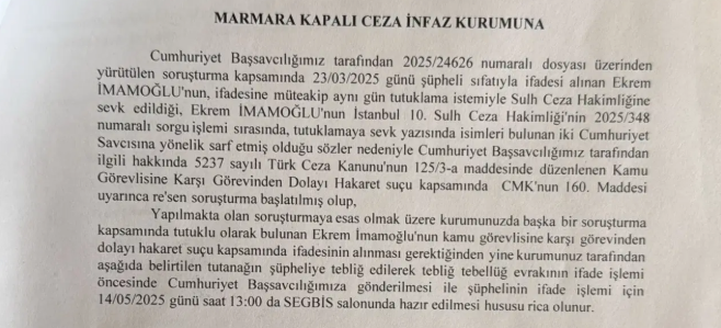 Ekrem İmamoğlu, hakkındaki yeni suçlamalara ilişkin olarak yarın saat 13.00’te Silivri Cezaevi’nden SEGBİS aracılığıyla ifade verecek.
