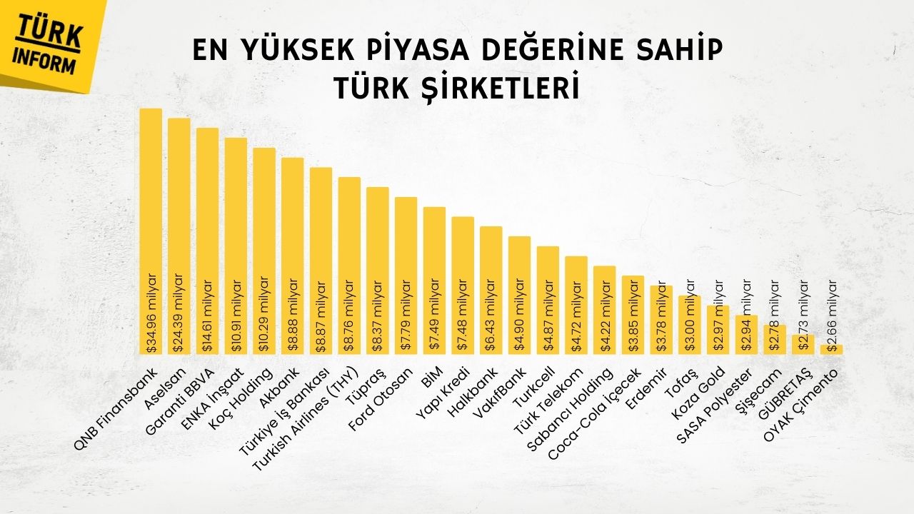 Listeye bakıldığında bankacılık ve holding şirketlerinin öne çıktığı görülüyor. QNB Finansbank, Garanti BBVA, Akbank, Türkiye İş Bankası ve Yapı Kredi, toplamda Türkiye piyasa değerinin önemli bir kısmını temsil ediyor. Koç Holding ve Sabancı Holding gibi büyük holdingler de listede yer alarak ekonomik gücün merkezinde olduklarını gösteriyor.