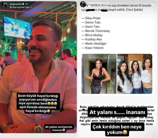 Bu isimlerden biri de Engin Polat’tı. Testinde yasaklı maddeye rastlanmayan Polat’ın örneklerinde yalnızca bazı ilaçlara ait kalıntılar bulunduğu belirtildi. Ancak Polat’ın verdiği tepki, test sonucundan daha fazla konuşuldu. Eşi Dilan Polat’ın pozitif çıkan testi sonrasında yaptığı paylaşımla dikkatleri yeniden üzerine çeken Engin Polat, “Sevdiğimden niye ayırdınız beni?” ifadelerini kullanarak hem eleştiri hem de mizah içeren bir dil kullandı.