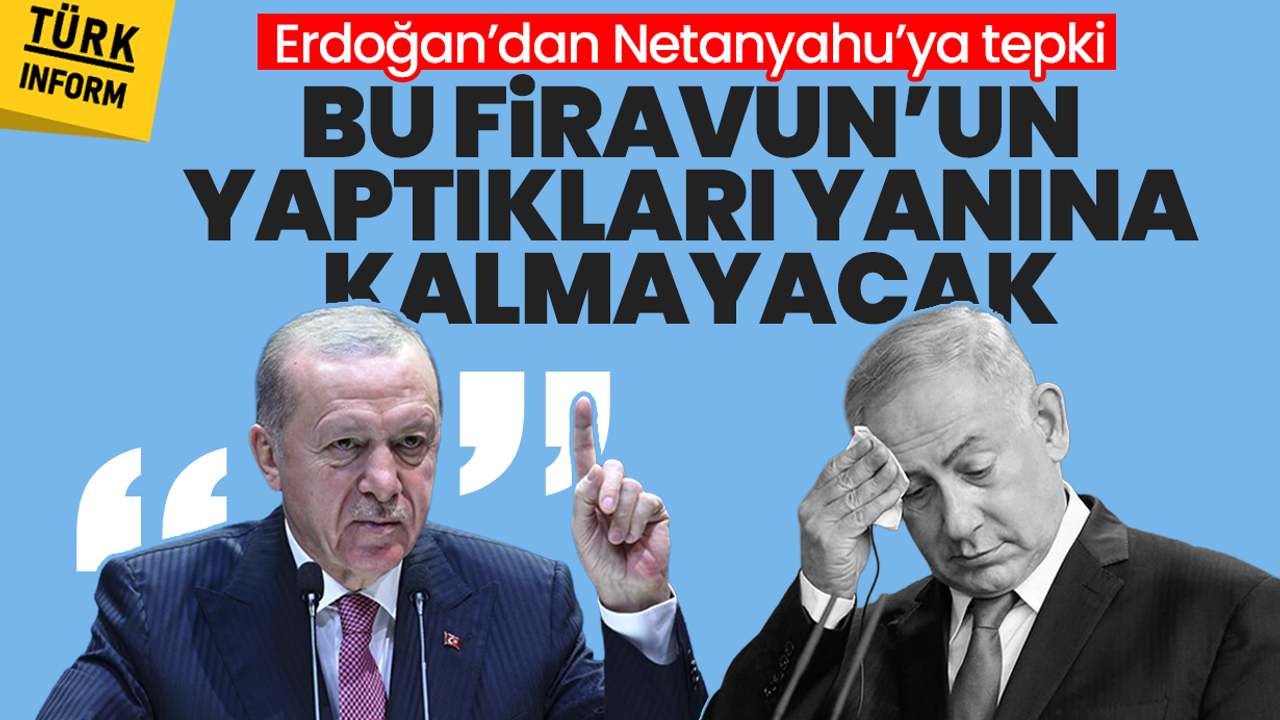 Cumhurbaşkanı Erdoğan, İsrail Başbakanı Netanyahu’ya yönelik eleştirilerinde şu ifadeleri kullandı: “Özellikle de Netanyahu denilen bu firavunun yaptıkları yanına kalmayacak. 7'den 70'e çok mazlumun ahını aldı. Bu yavruların ahı onun yanına kar kalmaz. Televizyon ekranlarında o çadırdan başka her şeye benzeyen rüzgarların, yağmurun, çamurun içindeki o yavruların hali heralde onların ahı Netanyahu'ya kar kalmaz.”