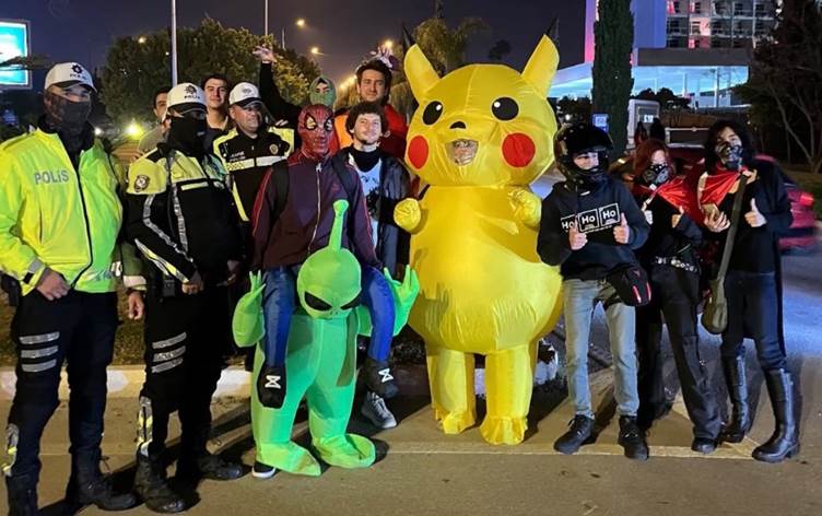 Eylemci Pikachu polisten kaçtığı görüntülerin üzerine polis ekipleriyle bir araya gelerek hatıra fotoğrafı çekindi.