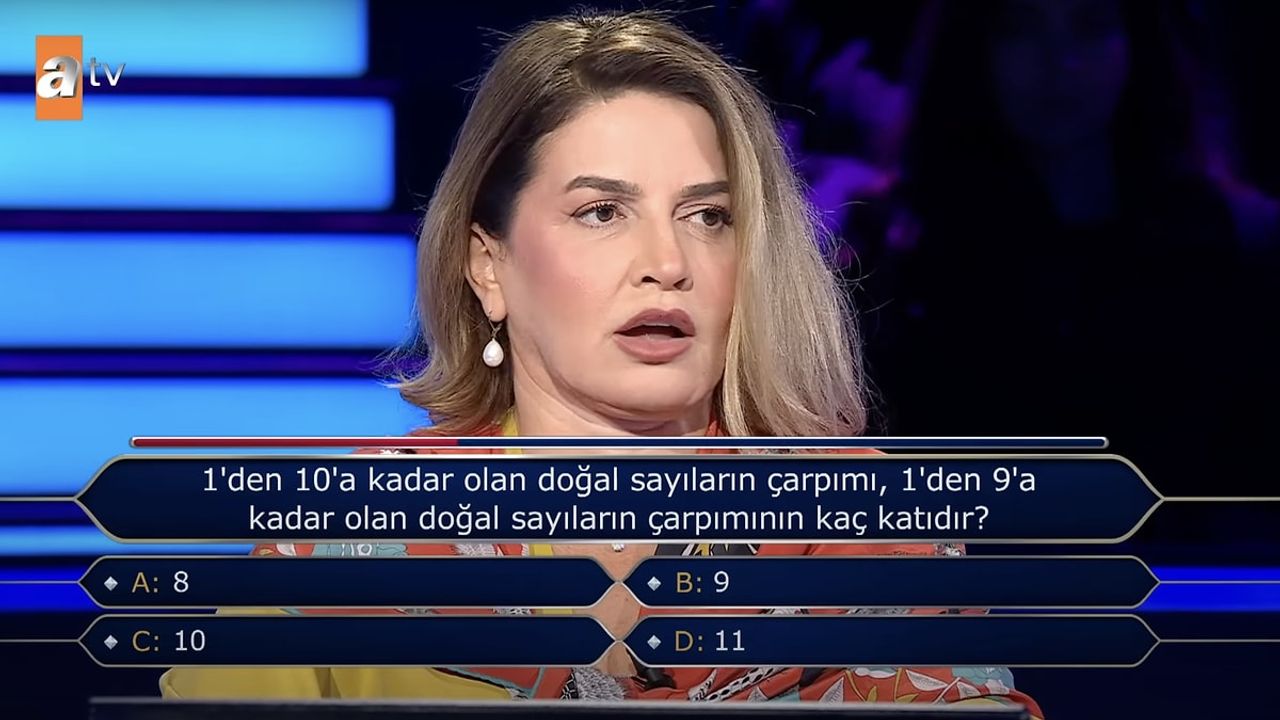 Matematikte “faktöriyel” konusuna doğrudan işaret eden bu soru, izleyiciler tarafından basit bulunurken, yarışmacı iki joker hakkı kullanmak zorunda kaldı.