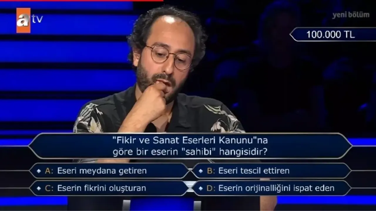 Fikir ve Sanat Eserleri Kanunu’na göre bir eserin sahibi, onu meydana getiren kişidir. Kim Milyoner Olmak İster’de sorulan bu soru, hem yarışmacılar hem de izleyiciler için hem bilgilendirici hem de düşündürücü bir an oldu. Yarışma, bu tarz sorularla hem genel kültürü artırıyor hem de farklı alanlarda bilgi edinme fırsatı sunuyor.