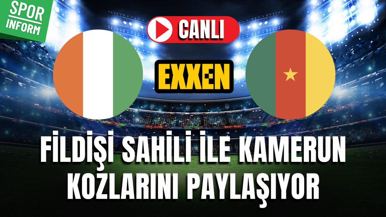 Afrika Uluslar Kupası 2025 Fas Grup F kapsamında oynanacak Fildişi Sahili – Kamerun karşılaşması, 28 Aralık Pazar günü saat 23.00’te başlayacak ve Exxen ekranlarından canlı olarak yayınlanacak.Afrika Uluslar Kupası 2025 Fas Grup F mücadelesinde oynanacak Fildişi Sahili – Kamerun karşılaşması, Türkinform canlı anlatımıyla takip edilebilecek. Maç boyunca yaşanacak önemli anlar, goller, kartlar ve oyuncu değişiklikleri anbean okuyuculara aktarılacak. Karşılaşmanın gidişatına dair tüm gelişmeler, Türkinform canlı anlatım ekranında yer alacak.