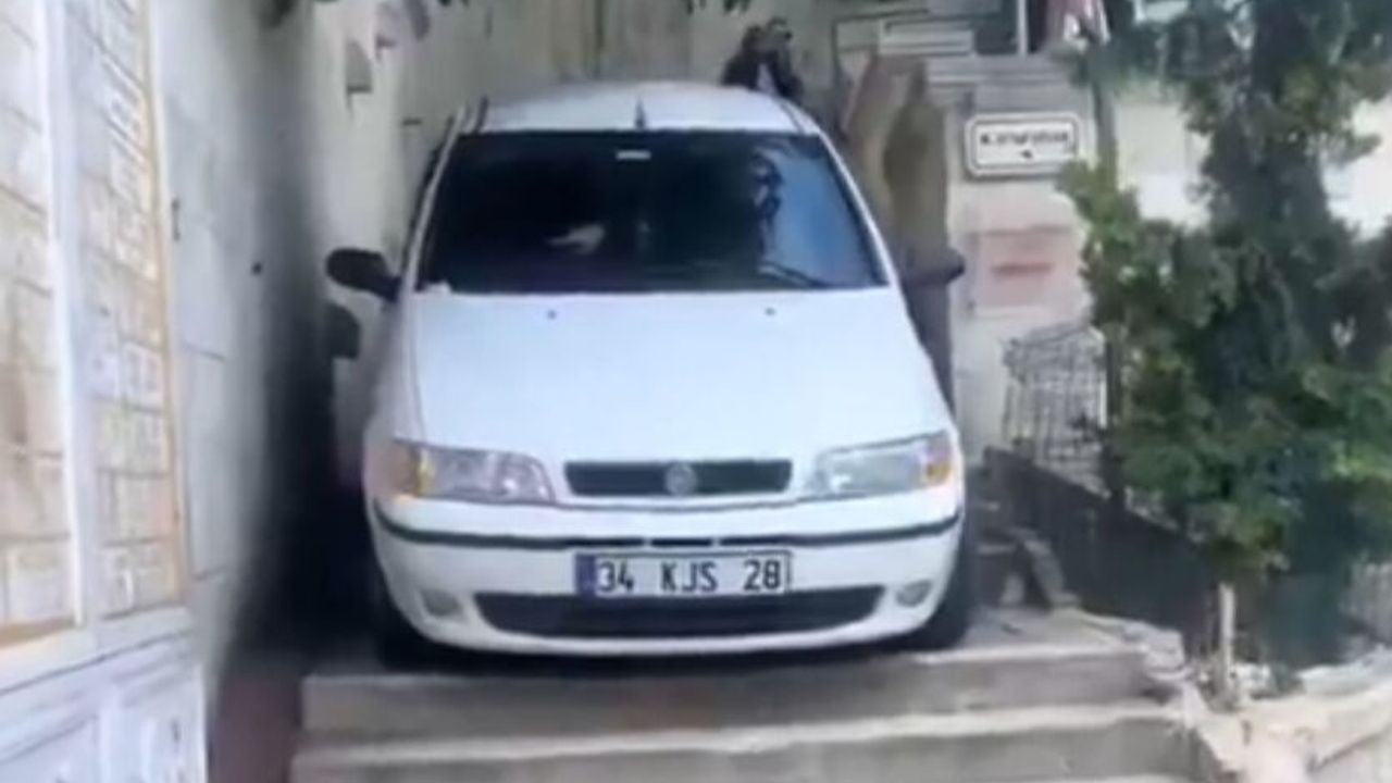 Yayaların kullandığı merdivenleri yol sanan sürücü, hiçbir tereddüt göstermeden otomobiliyle merdivenlere girdi. Görenlerin hayretle izlediği o anlar cep telefonu kamerasına yansıdı. Görüntülerde, sürücünün sinyal vererek merdivenlerden inmeye çalıştığı, çevredeki vatandaşların ise “Çekilin oradan inecek, çarpabilir” diye uyarılarda bulunduğu duyuluyor.