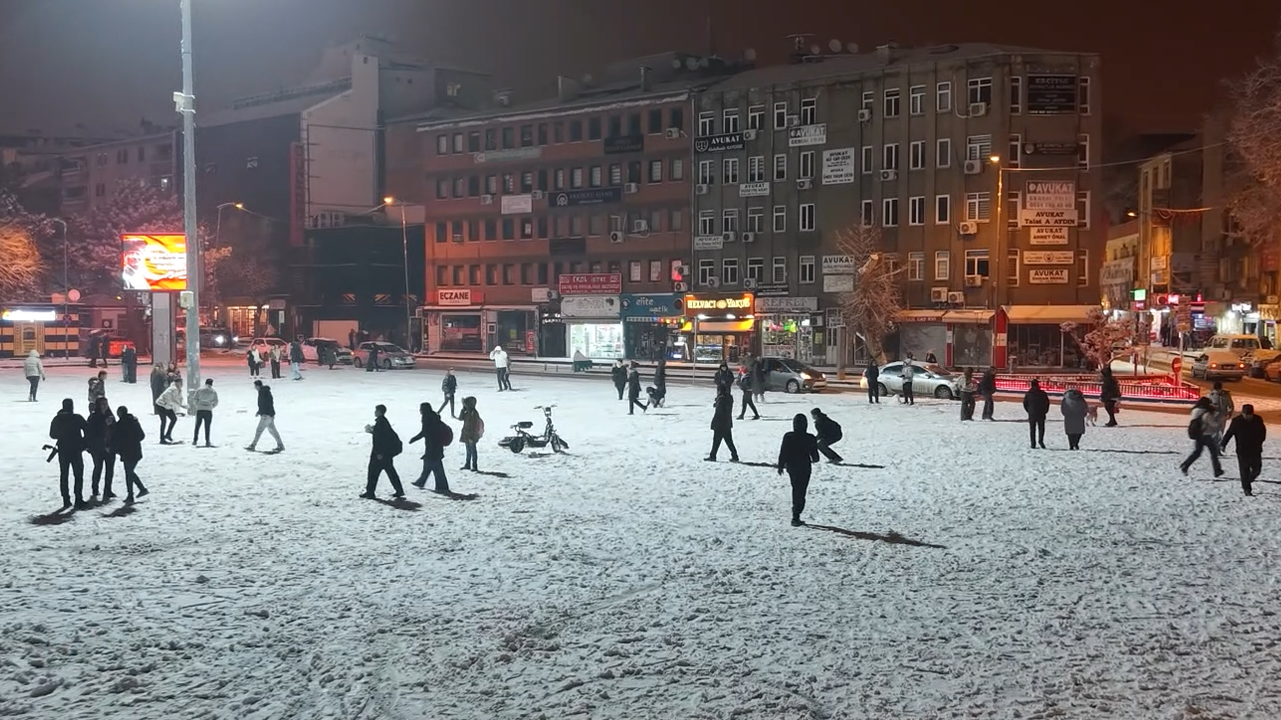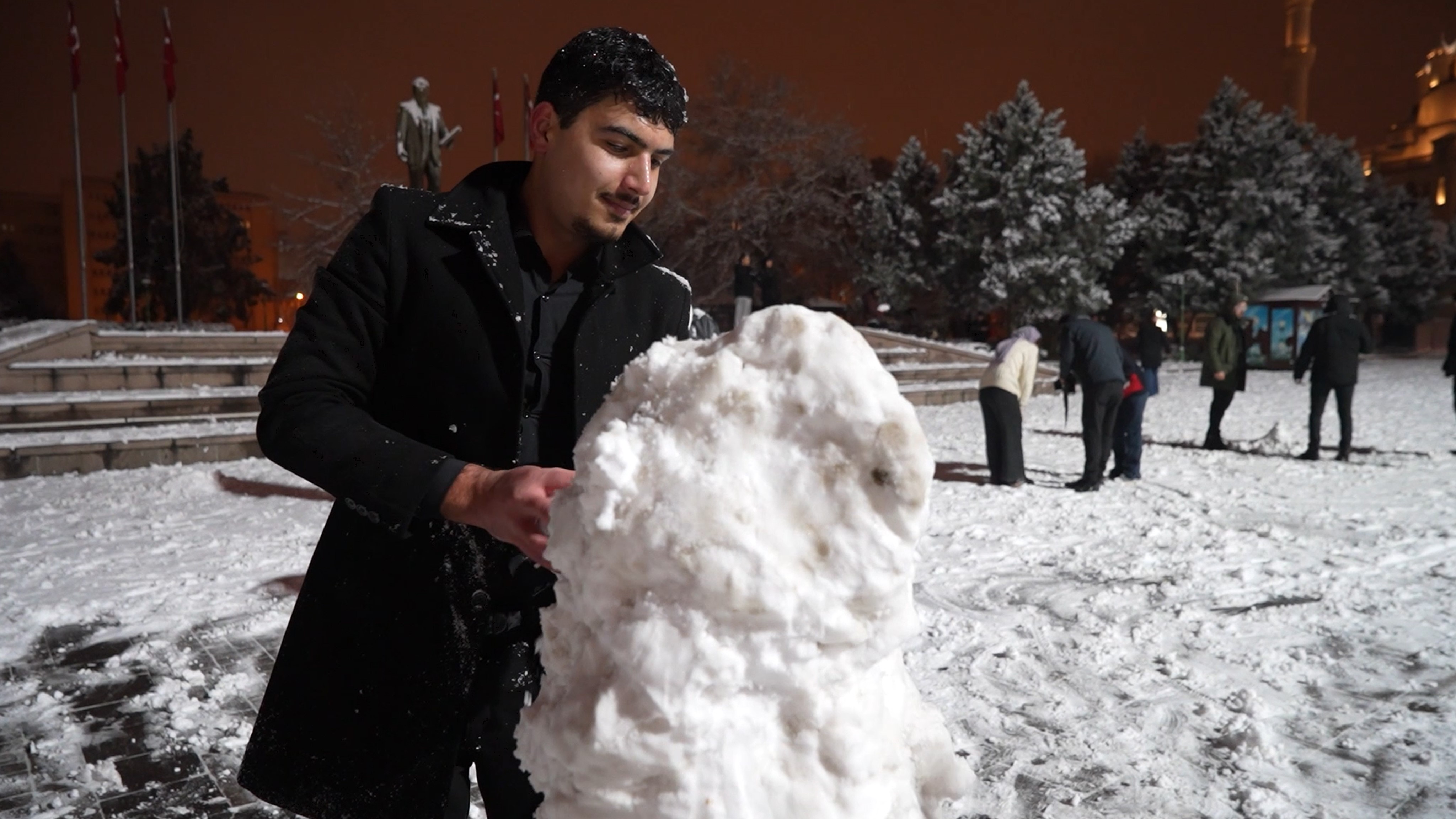 Kent merkezindeki meydanlar kar manzarasıyla hareketlendi. Gençler kartopu oynayıp, hatıra fotoğrafı çekindi. Vatandaşlar da karda yürüyüş yapmanın keyfini çıkardı.