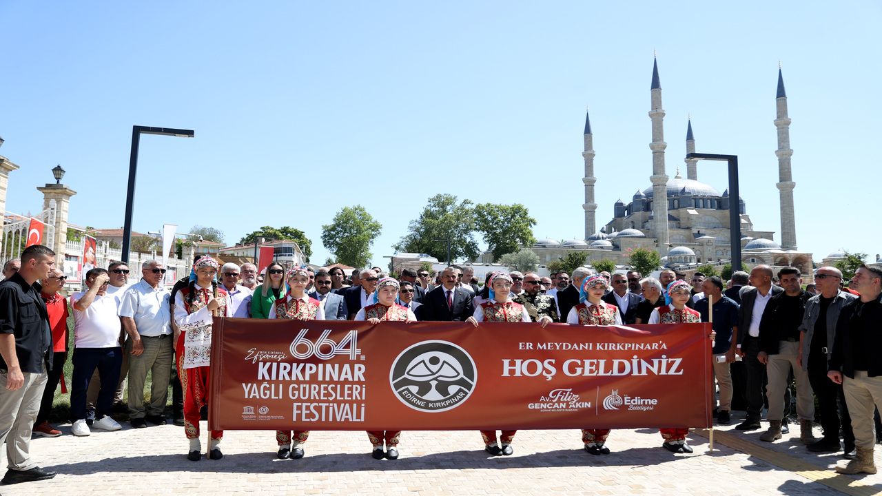 Akın, siyasi parti ve sivil toplum örgütü temsilcileri, kurum müdürleri ile eski Kırkpınar ağalarının da bulunduğu kortej, ağayı karşılamak üzere belediye önünden davul zurnayla Selimiye Meydanı'na kadar yürüdü.