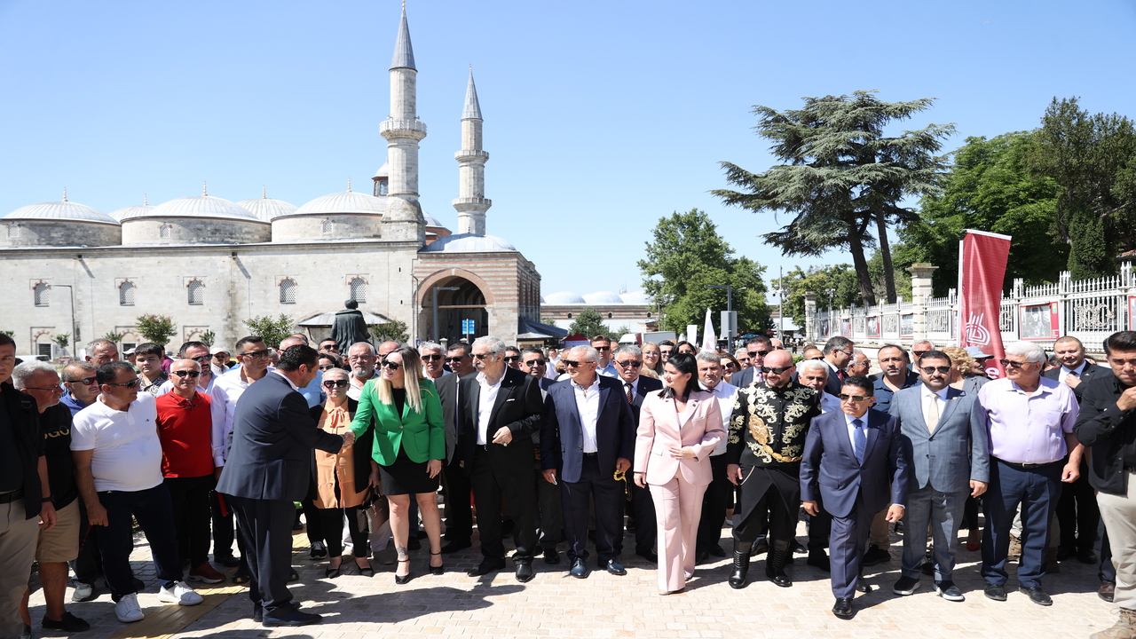Konuşmaların ardından Akın ve beraberindekiler, Edirne Valisi Yunus Sezer'i Selimiye Meydanı'nda karşıladı.