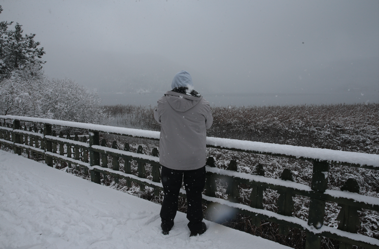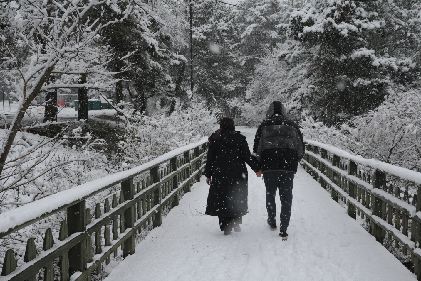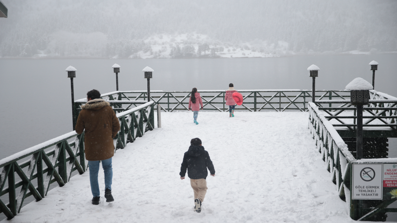 Bolu'daki Abant Gölü Milli Parkı'nda gece başlayan kar yağışı devam ediyor.