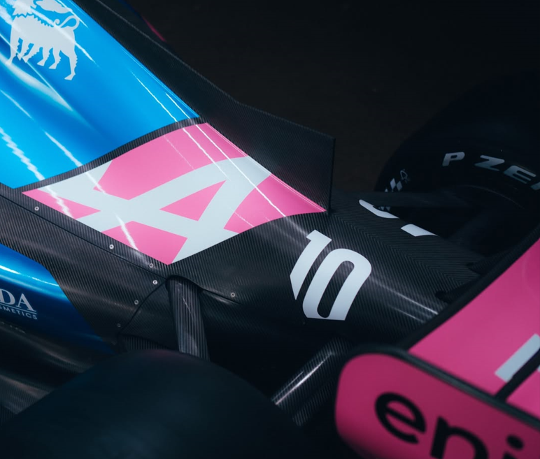 A526’nın tasarımında Alpine’in karakteristik mavi rengi baskın şekilde yer aldı. Ana sponsor BWT’nin pembe rengi ise özellikle burun bölümünde ve sidepod alanlarında daha belirgin olarak kullanıldı. 2025 sezonuna kıyasla araç üzerinde daha az siyah karbon yüzey tercih edildiği görüldü. Renk dağılımı, önceki sezona göre daha açık tonlarla şekillendirildi.